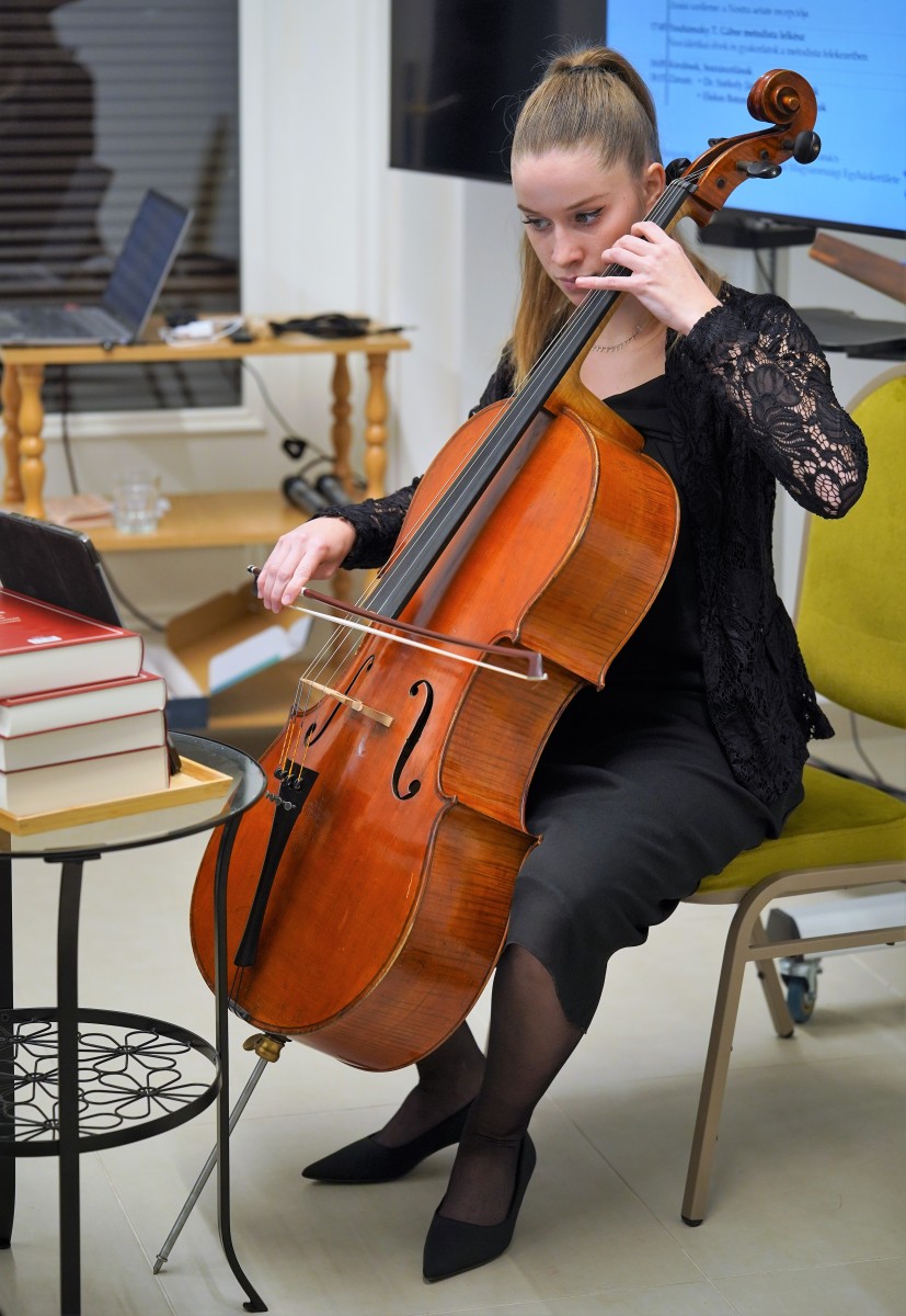 Szabó Lilla Nóra ifjú unitárius csellóművész előadásában Johann Sebastian Bach első cselló szvitjének preludium tételét hallgatta a népes konferencia közönség.