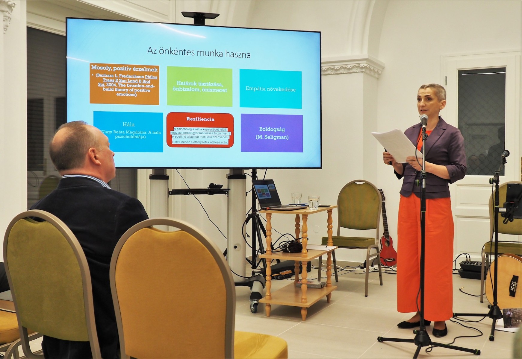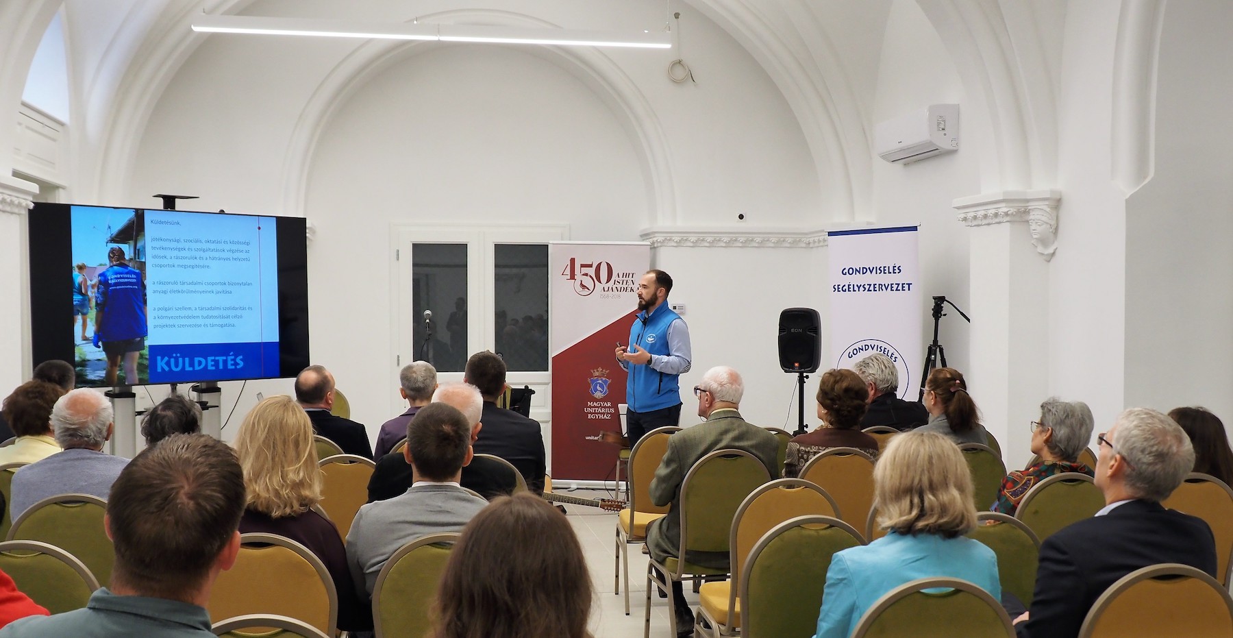 Az előadások sorát a Kolozsvárról érkezett Vagyas Attila, a Gondviselés Segélyszervezet anyaszervezetének alelnöke nyitotta meg, részletesen bemutatta az unitárius egyházi szeretetszolgálati tevékenységeket. A második előadó Tóth Izabella önkéntesünk volt, aki korábbi súlyos betegségeiből kiindulva, tudományos alapokra helyezve adott hiteles képet arról, milyen jótékony hatásokkal van az önkéntesség egészségünkre. Őt követte Darkó Attila prezentációja, amely körbejárta a Gondviselés Segélyszervezet magyarországi tevékenységi köreit, kitérve a tavalyi adventi élelmiszergyűjtés rekorderedményeire és a pénzügyi támogatások lehetséges változataira. Az előadás kitért a jövőbeni tervekre és célokra, amelyek magukban foglalják az önkéntes program, a húsvéti adománygyűjtés, illetve a kalákatábor és az online-adományozást előkészítő program indítását.